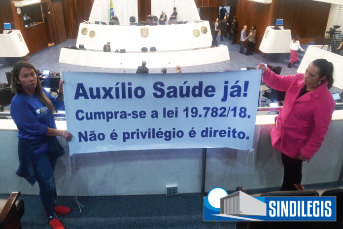 No entanto, até a presente data, os servidores da Assembleia Legislativa do Paraná não receberam em seus vencimentos o referido auxílio, razão pela qual, o SINDILEGIS solicita a interveniência de Vossas Excelências junto Mesa Executiva da Casa (Presidente – Ademar Traiano e 1º Secretário – Luiz Cláudio Romanelli), no sentido de que a Lei, seja regulamentada, e se efetue imediatamente o pagamento do auxílio-saúde, aos servidores efetivos, aposentados e comissionados da Alep.